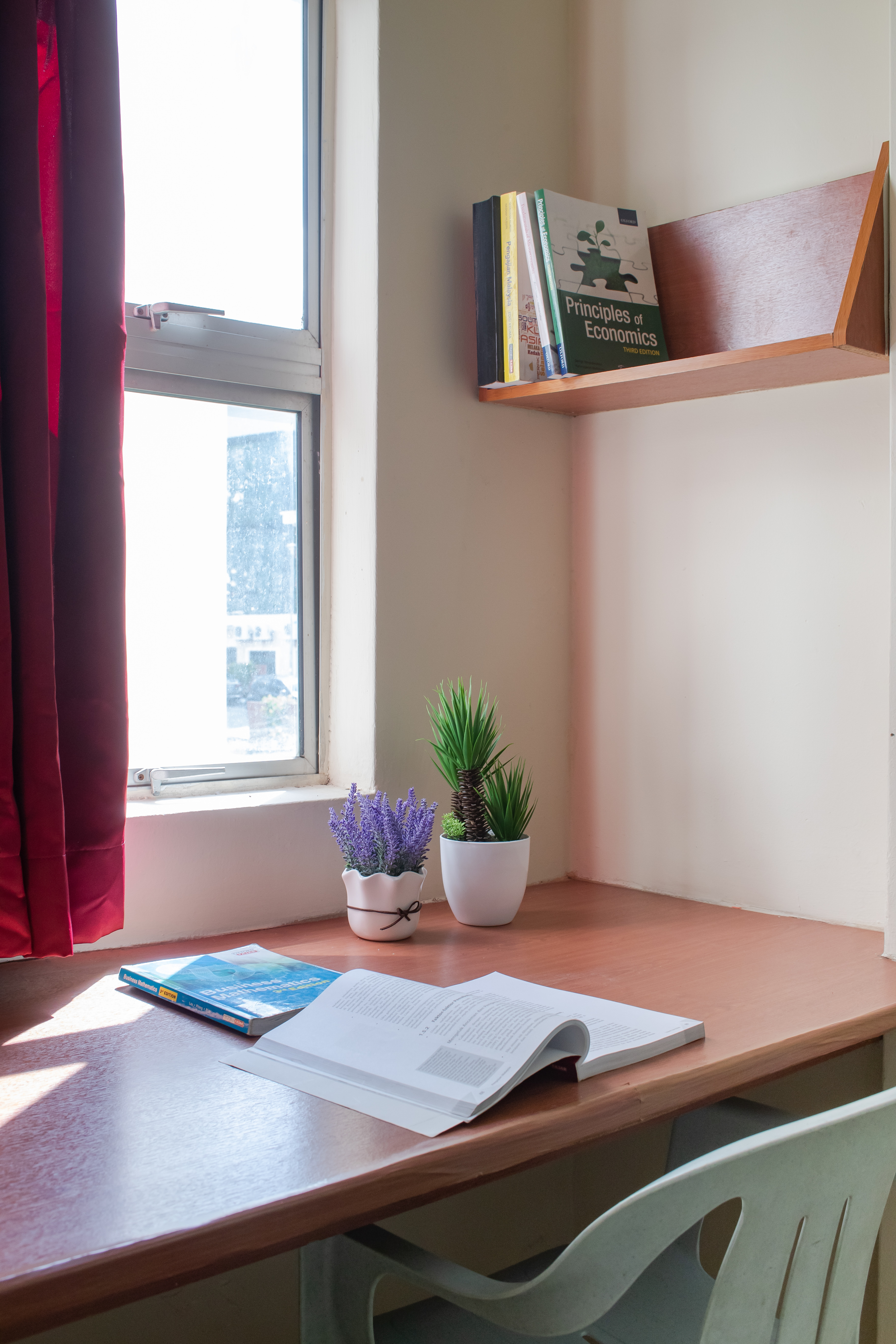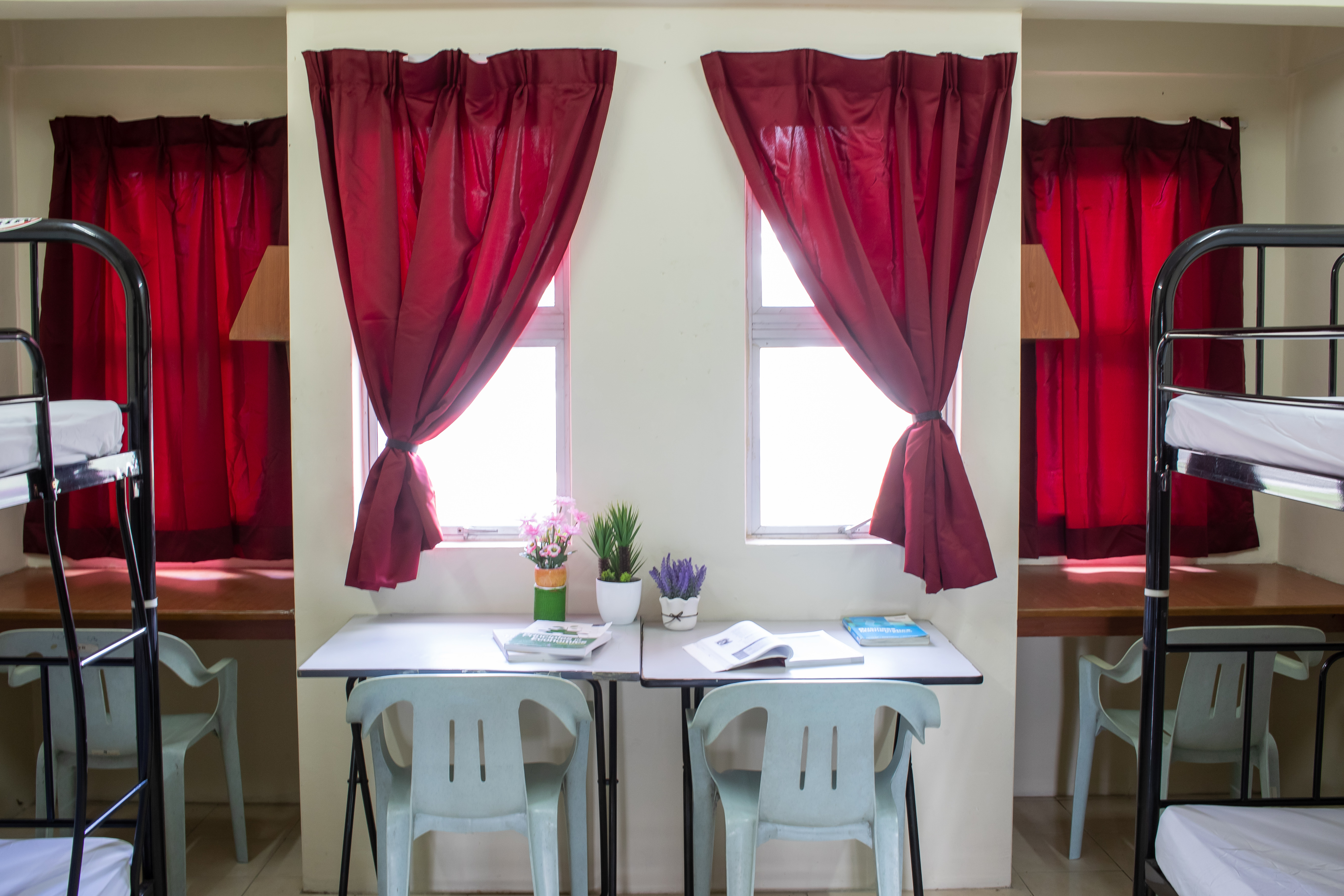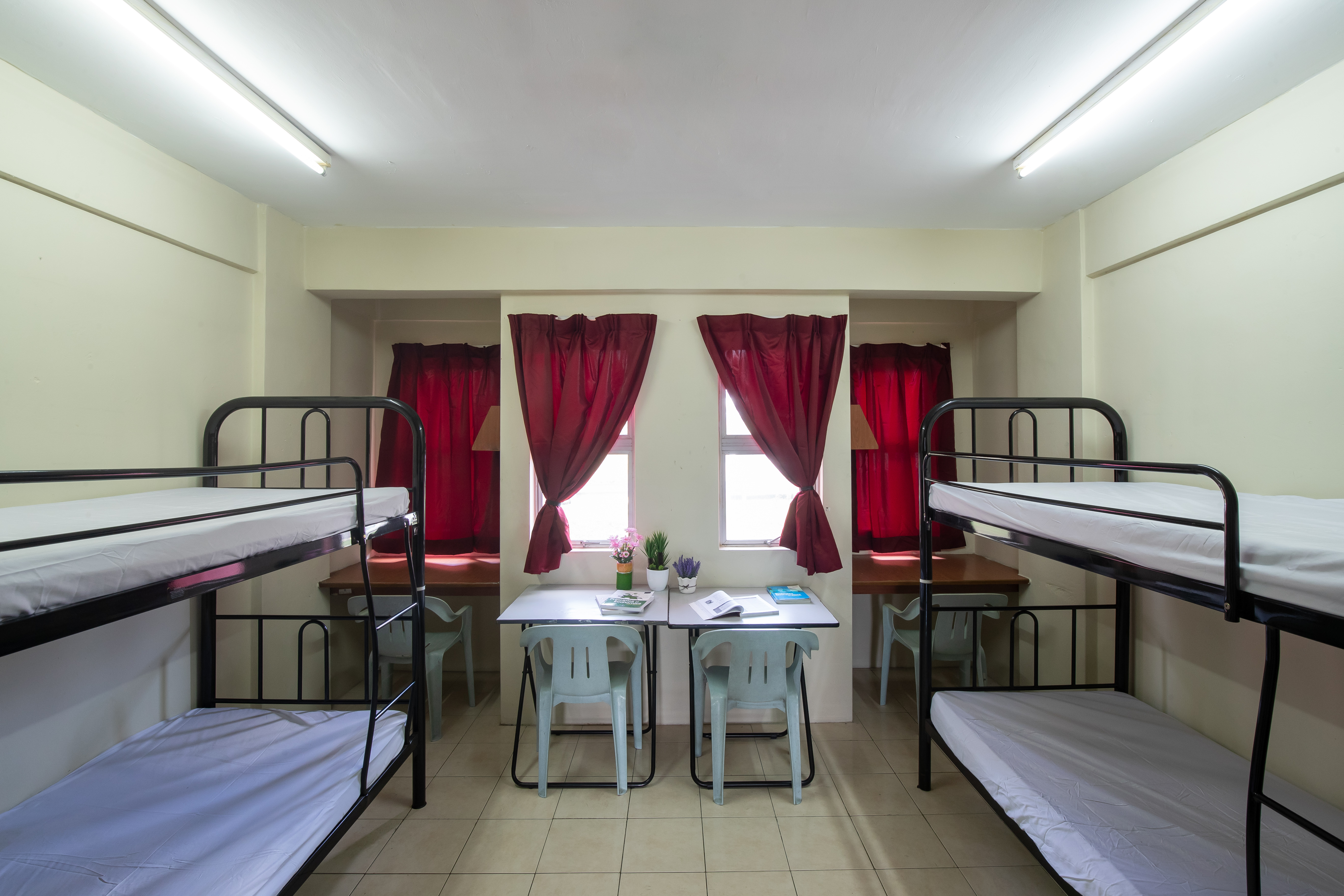 Each room is furnished with a bed frame and mattress, cupboard, study table, chair, fan and curtains. Additional items like bedsheets, pillows, blankets, toiletries and other necessities need to be purchased by the student. There are common bathrooms and toilets as well as a coin operated laundry machine. A 24-hour security service at the hostel entrance and regular patrols around the campus grounds ensure safety and peace of mind for students.